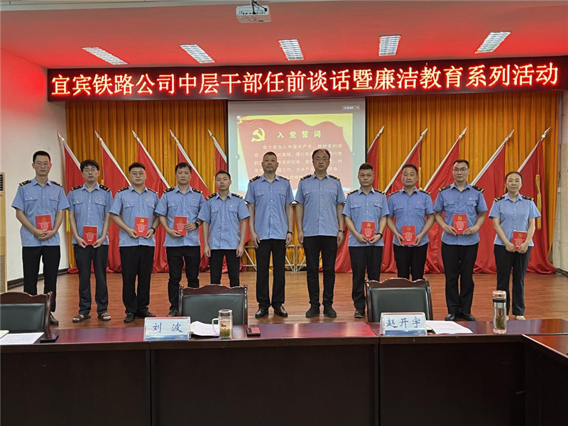 7月4日下午,蜀道铁路运营集团下属宜宾铁路公司对新提职的8名中层干部开展任前集体谈话,公司纪委按照干部任前“九个一”廉洁教育活动的要求,结合开展了系列廉洁教育活动。