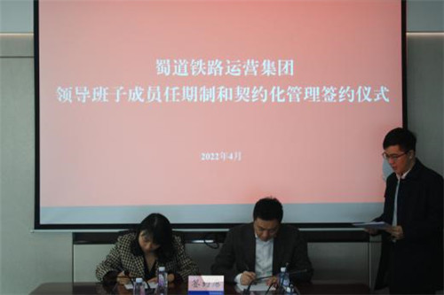 4月19日,蜀道铁路运营集团在两江国际大厦举行领导班子成员任期制和契约化管理签约仪式。蜀道铁路运营集团党委书记、董事长张锋出席并讲话。蜀道铁路运营集团党委委员、纪委书记赵蕾主持。